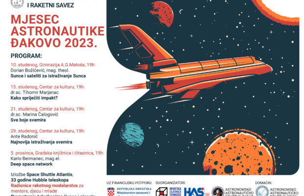 Mjesec astronautike Đakovo 2023. započinje danas jutarnjim astronomskim promatranjem Sunca s Trga Jospa Jurja Strossmayera od 10 sati, najavili su iz Astronomskog društva Orion.