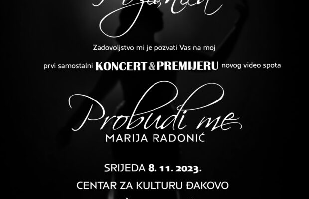 U srijedu, 8. studenog u Centru za kulturu s početkom u 20 sati svoj prvi samostalni koncert održat će Marija Radonić. Ulaz je besplatan, a u sklopu koncerta bit će održana premijera videospota za njezinu novu pjesmu “Probudi me”. Gosti na koncertu bit će Mario Šulina s akustičnom pratnjom i Ivan Ševarac.
